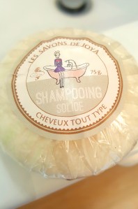 Nous en sommes arrivées à parler de cette marque, les savons de Joya. Produits fais main, en France, bio, avec des emballages recyclables. Et me voilà dans sa salle de bain (oui ok, moi, mon mari…et les petits princes, nous nous sommes comme qui diraient invités une tite semaine) à tester le fameux shampoing et là…révélation !
