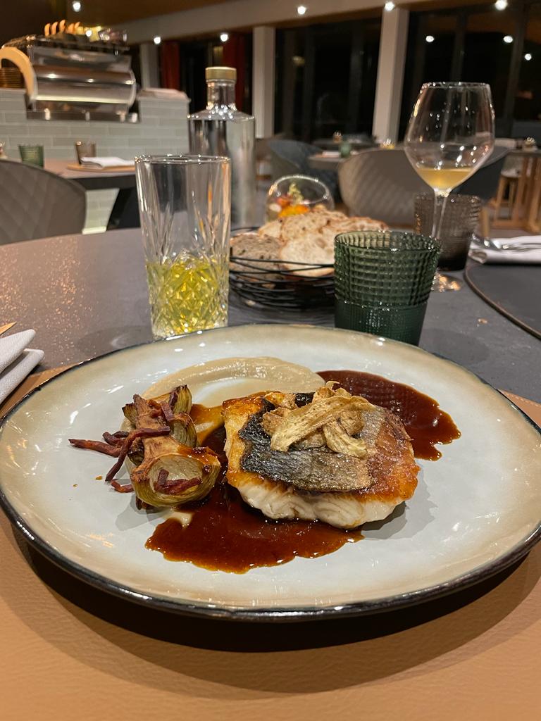 Bar grillé, déclinaison d’artichauts, jus tranché au chorizo ibérique