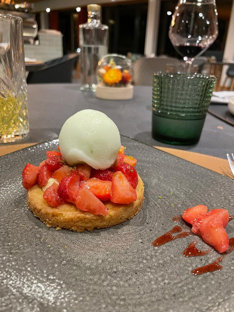 Moi j’ai pris léger ! Oui ok…Comme ça sur le papier, sablé breton ça peut sembler ambitieux quand on me connait pour une fin de repas. Mais là même pas. Le sablé est juste croustillant à souhait, et il reste léger. La glace citron apporte sa part de légèreté et sa fraîcheur pour rendre le tout très agréable en bouche et pas « lourd ».