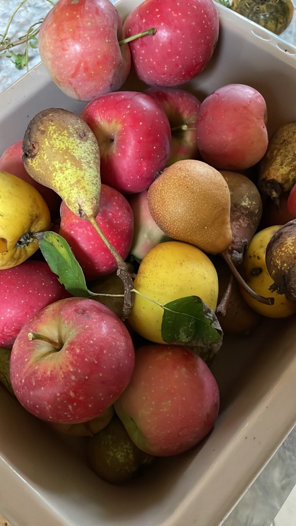 Ici j’aime la lumière, le calme en plein milieu de la ville, d’avoir de l’espace, de pouvoir aller dans mon jardin cueillir des fruits et des légumes (oui j’avoue on profite largement d’une récolte pour laquelle nous n’avons pas travaillé alors merciii !), de profiter de la terrasse…