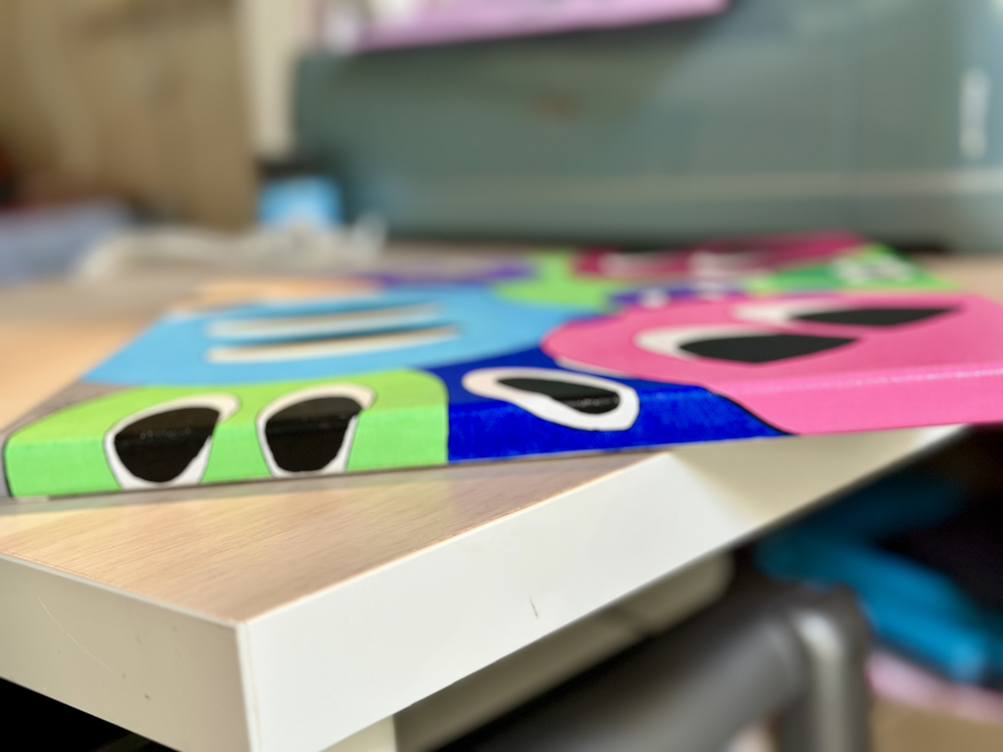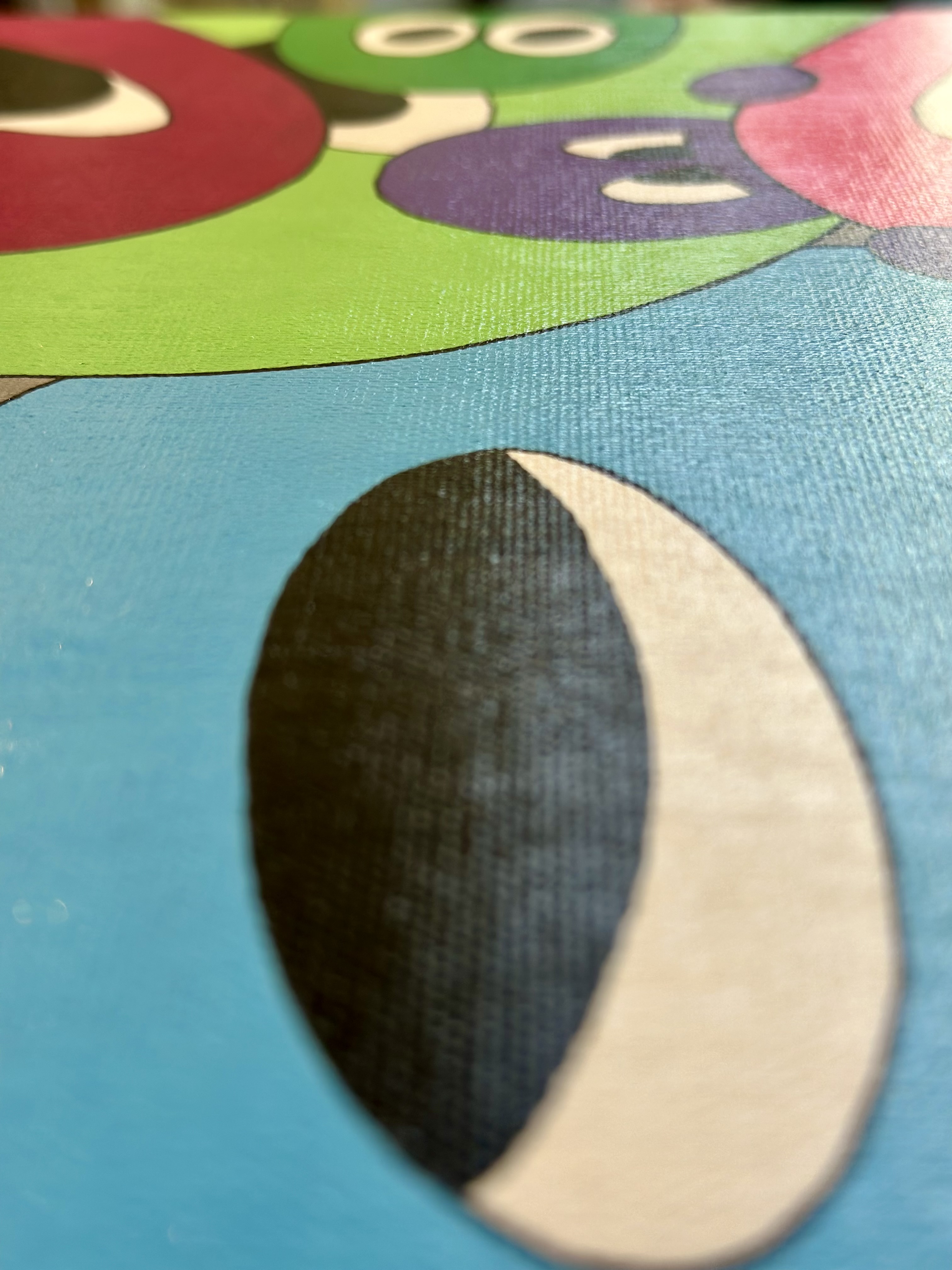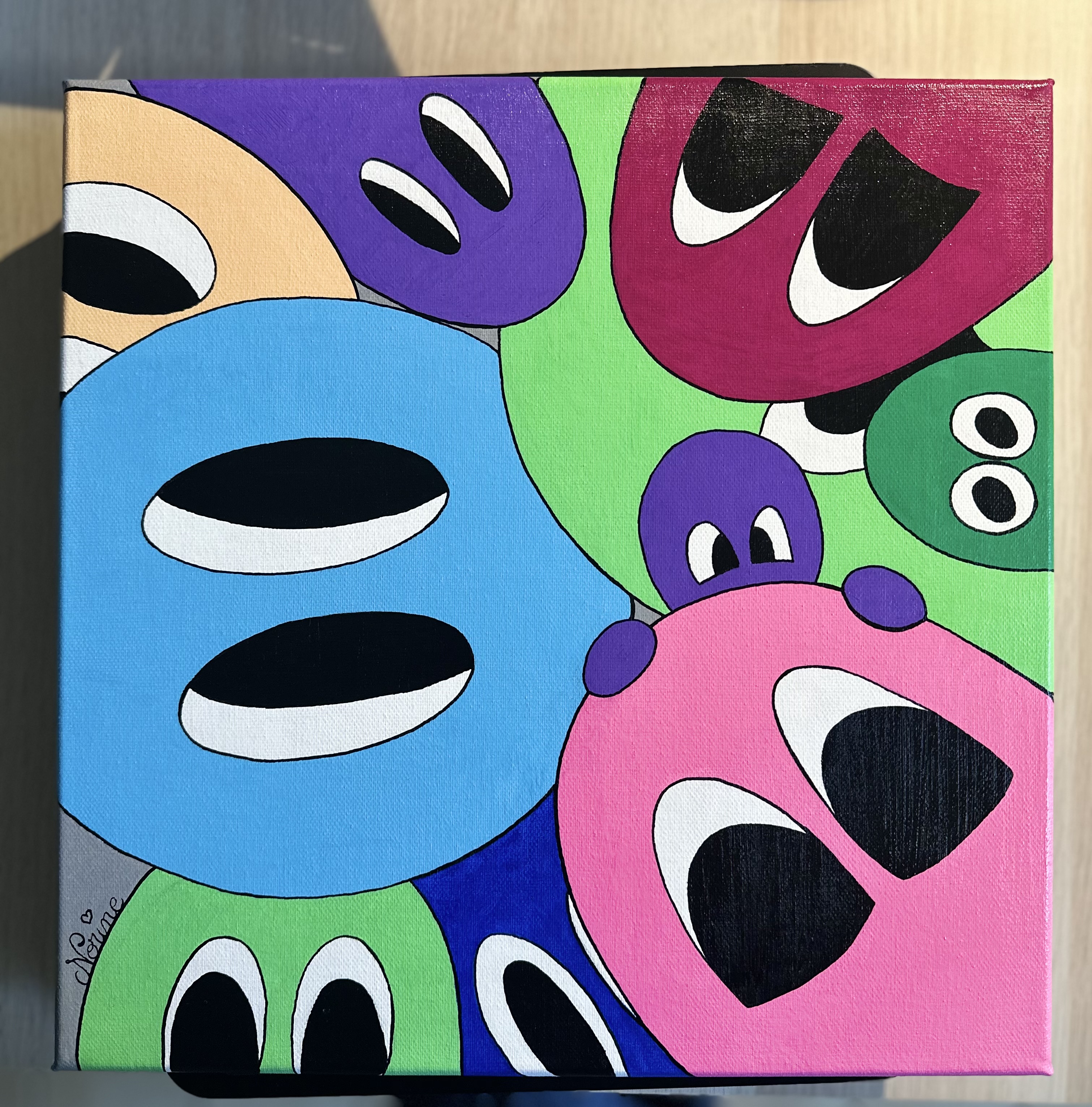 - Des bonshommes, de la texture, de l’aquarelle, de l’acrylique, tu vas te fixer un jour sur un style ?