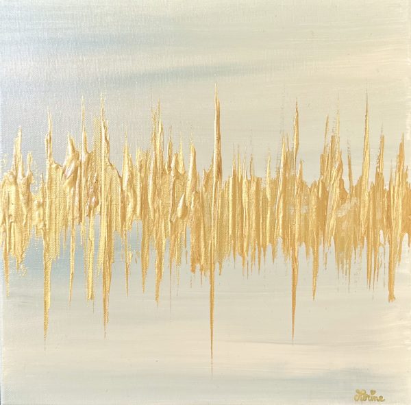L’effet texturé donné par la peinture acrylique dorée, appliquée au couteau, capte la lumière.